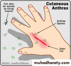 Anthrax is an acute infectious disease caused by the spore forming bacterium Bacillus anthracis. Anthrax most commonly occurs in wild and domestic lower vertebrates (cattle, sheep, goats camels, and other herbivores , but it can also occur in humans when they are exposed to infected animals or tissue from infected animals.Other names for the disease are Wool sorter’s Disease and Rag picker's Disease