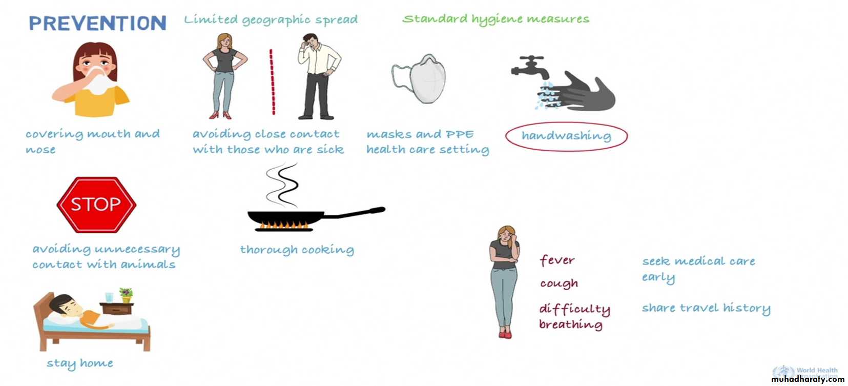 This new virus currently has a limited geographic spread. However, there are a number of standard hygiene practices that have been recommended to protect against infection and further spread. These include:• Covering your mouth and nose when coughing or sneezing with a medical mask, tissue or flexed elbow.
