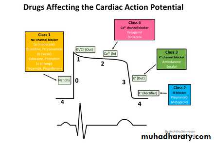 B- Supraventricular arrhythmia and ventricular arrhythmia like:- Amiodarone, Qunidine, Procainamide, Disopyramide, B-Blockers, Flecainide and Propafenone.