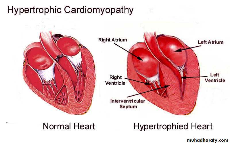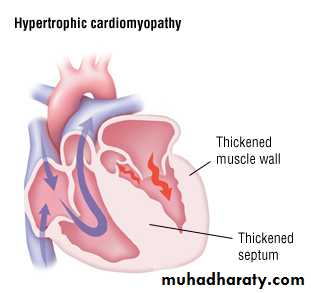 The essential feature of hypertrophic cardiomyopathy is myocardial hypertrophy which is most pronounced in the left ventricle and inter-ventricular septum.The hypertrophy is usually conspicuous in sub-aortic region of the septum, so this asymmetric hypertrophy is often associated with ventricular outflow obstruction during systole, so it's called "idiopathic hypertrophic sub-aortic stenosis" .