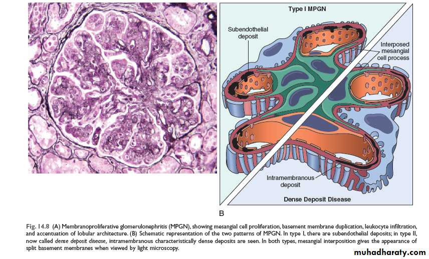 Membranoproliferative glomerulonephritis:-
