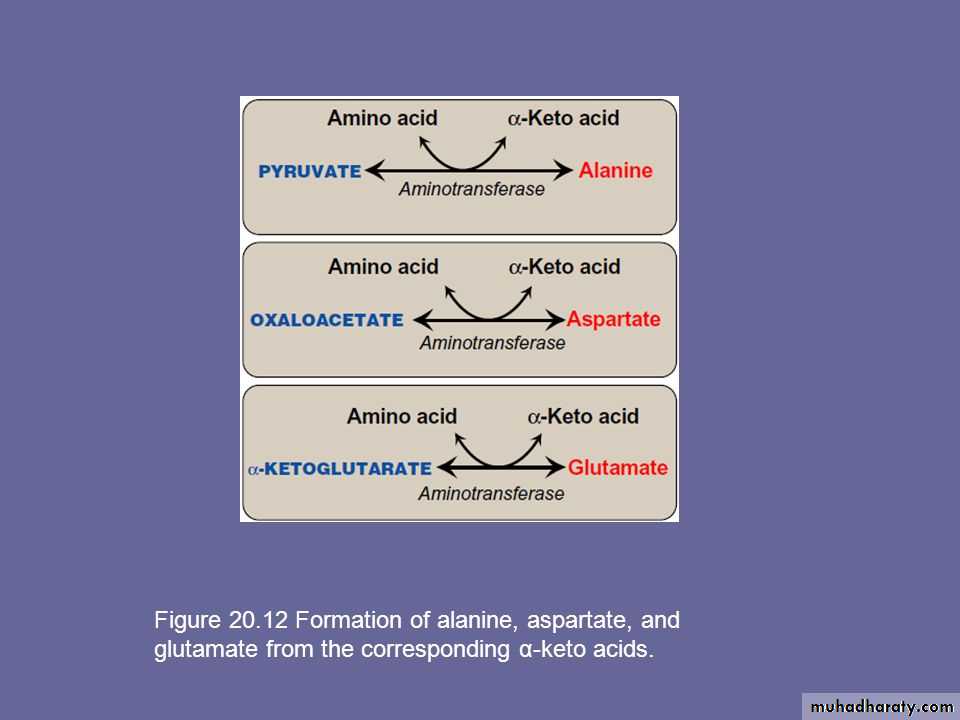 A number of a.as can be synthesized from components of glycolytic pathway and the CAC . In addition several of the a.as can be formed from other a.as. These a.as called nonessential a.as i.e. they can be made available to the cells even though they are not included in the diet.A. Synthesis from α-keto acids