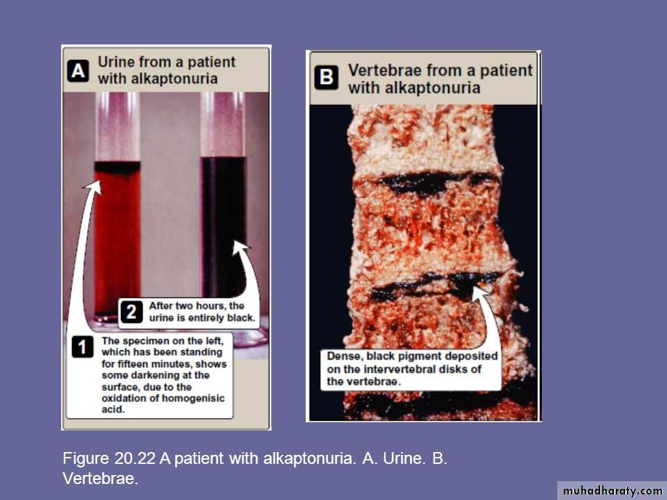 Hypopigmentation: Patients with phenylketonuria often show a deficiency of pigmentation (fair hair, light skin color, and blue eyes). The hydroxylation of tyrosine by tyrosinase, which is the first step in the formation of the pigment melanin, is competitively inhibited by the high levels of phenylalanine present in PKU.