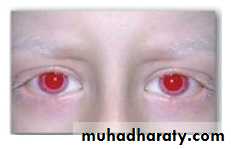 Patient with oculocutaneous albinism, showing white eyebrows and lashes.