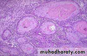 SCC is graded according to differentiation of tumor cells into 3 grades:Grade I: in well differentiated keratinizing type.