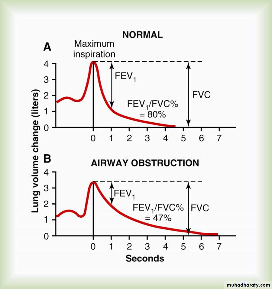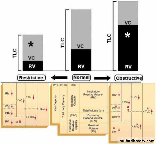 –Reduced in restrictive lung disease (pulmonary fibrosis).–May be Normal in obstructive lung disease (asthma, chronic bronchitis
