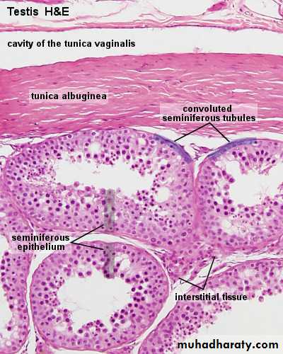 Interstitial tissue between the convoluted tubules is continuous with a layer of loose vascular connective tissue, the tunica vasculosa testis, which is found beneath the tunica albuginea.