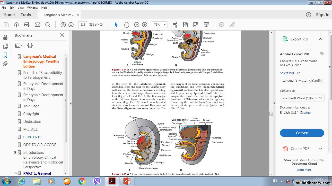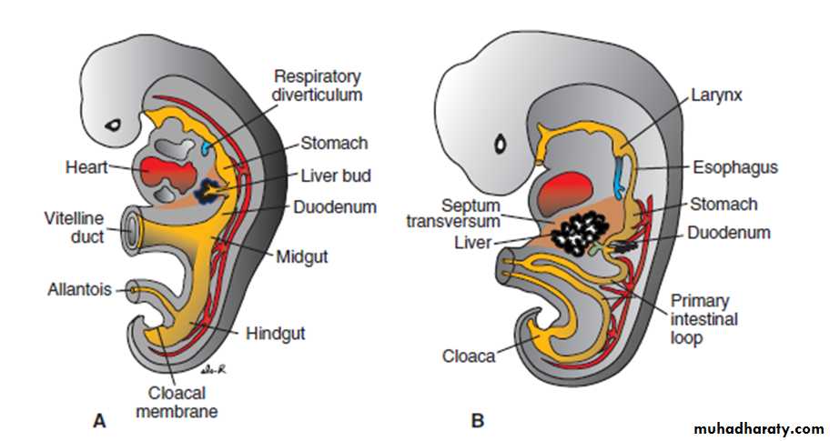 • The liver primordium appears in the middle of the third week as an outgrowth of the endodermal epithelium at the distal end of the foregut.• This outgrowth, the hepatic diverticulum, or liver bud, consists of rapidly