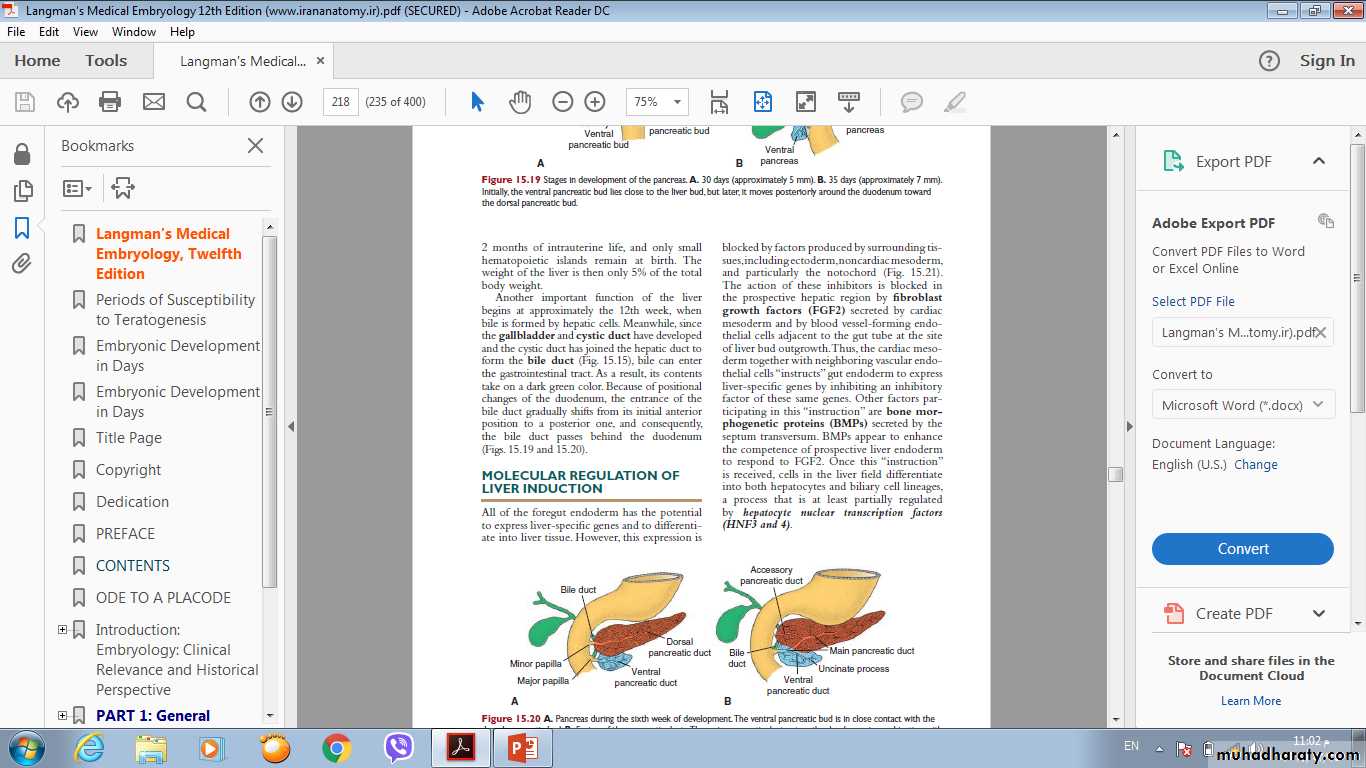 • A small ventral outgrowth is formed by the bile duct, and this outgrowth gives rise to the gallbladder and the cystic duct. The surface of the liver that is in contact with the future diaphragm is never covered by peritoneum; it is the bare area of the liver.