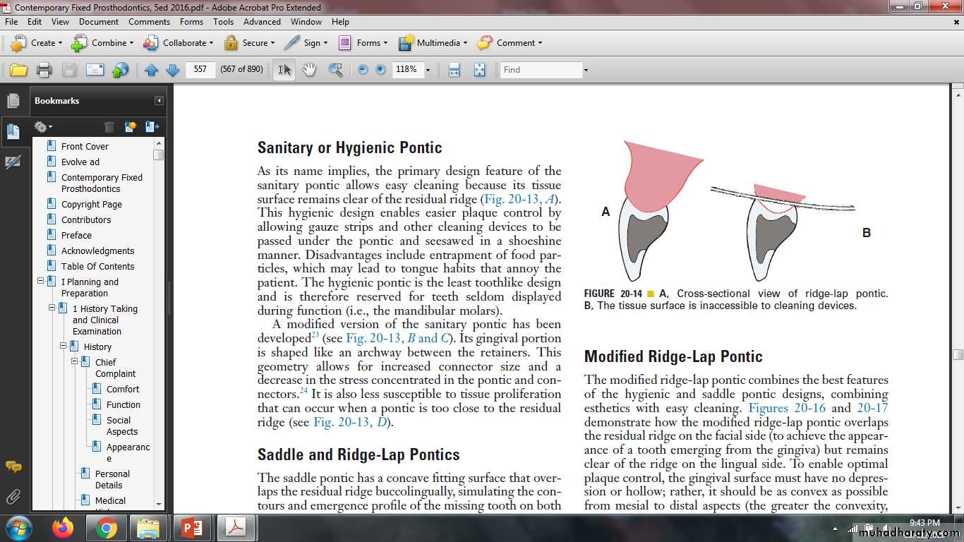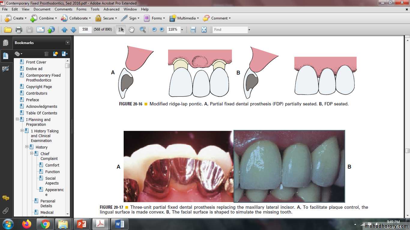 • To design a pontic that will meet hygienic requirements and prevent irritation of the residual ridge, particular attention must be given to the form and shape of the gingival surface.