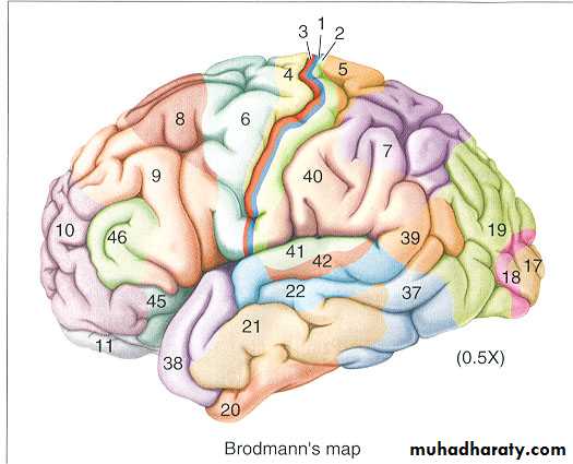 Brodmann produced a numbered, cytological map of cerebral cortex based upon its regional histological characteristicsSubdivisions with similar cellular and laminar structure are called 'areas'