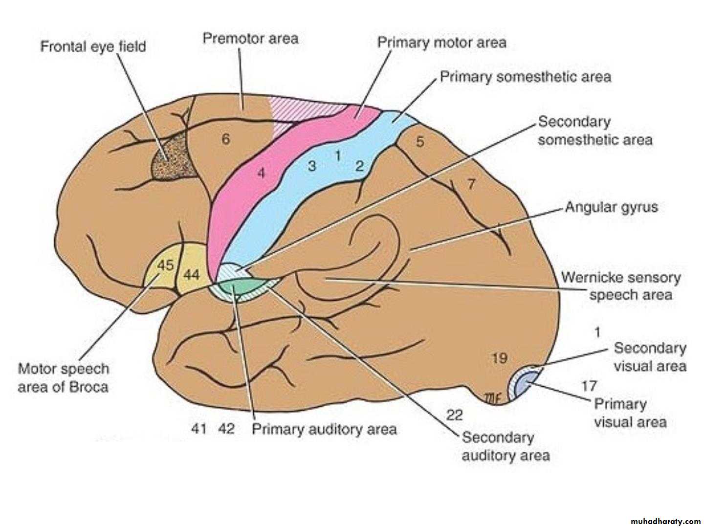 Organized around the lateral fissure.Broca’s area: concerned with expressive aspects of language.