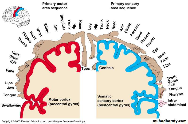 • Primary somatosensory cortex: located in postcentral gyrus (Brodmann’s area 1, 2, 3).