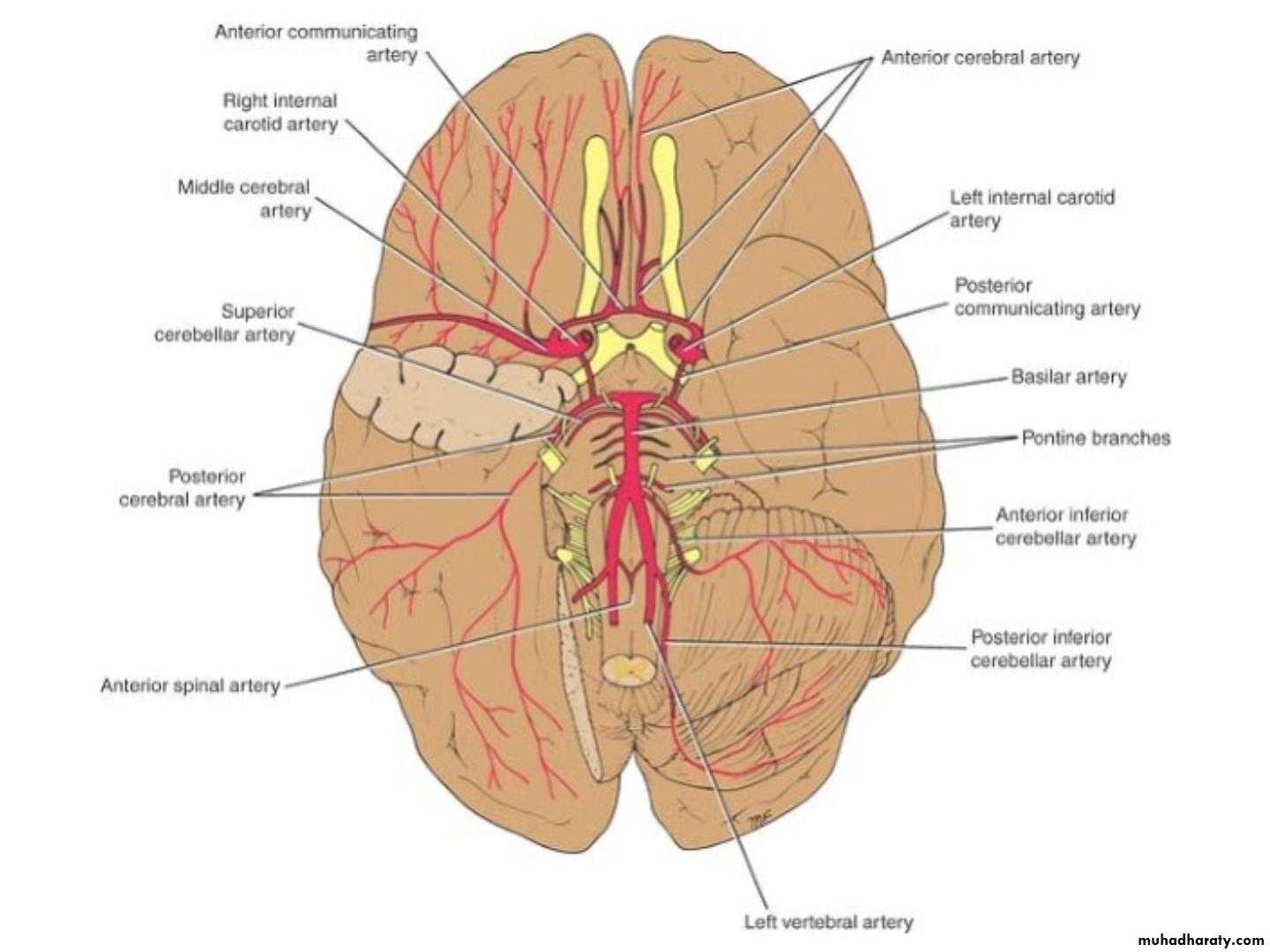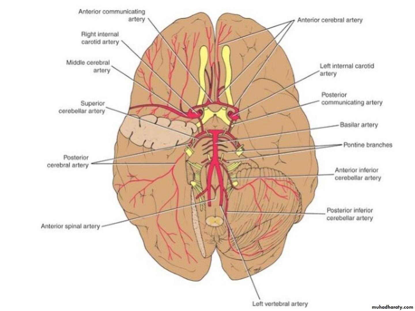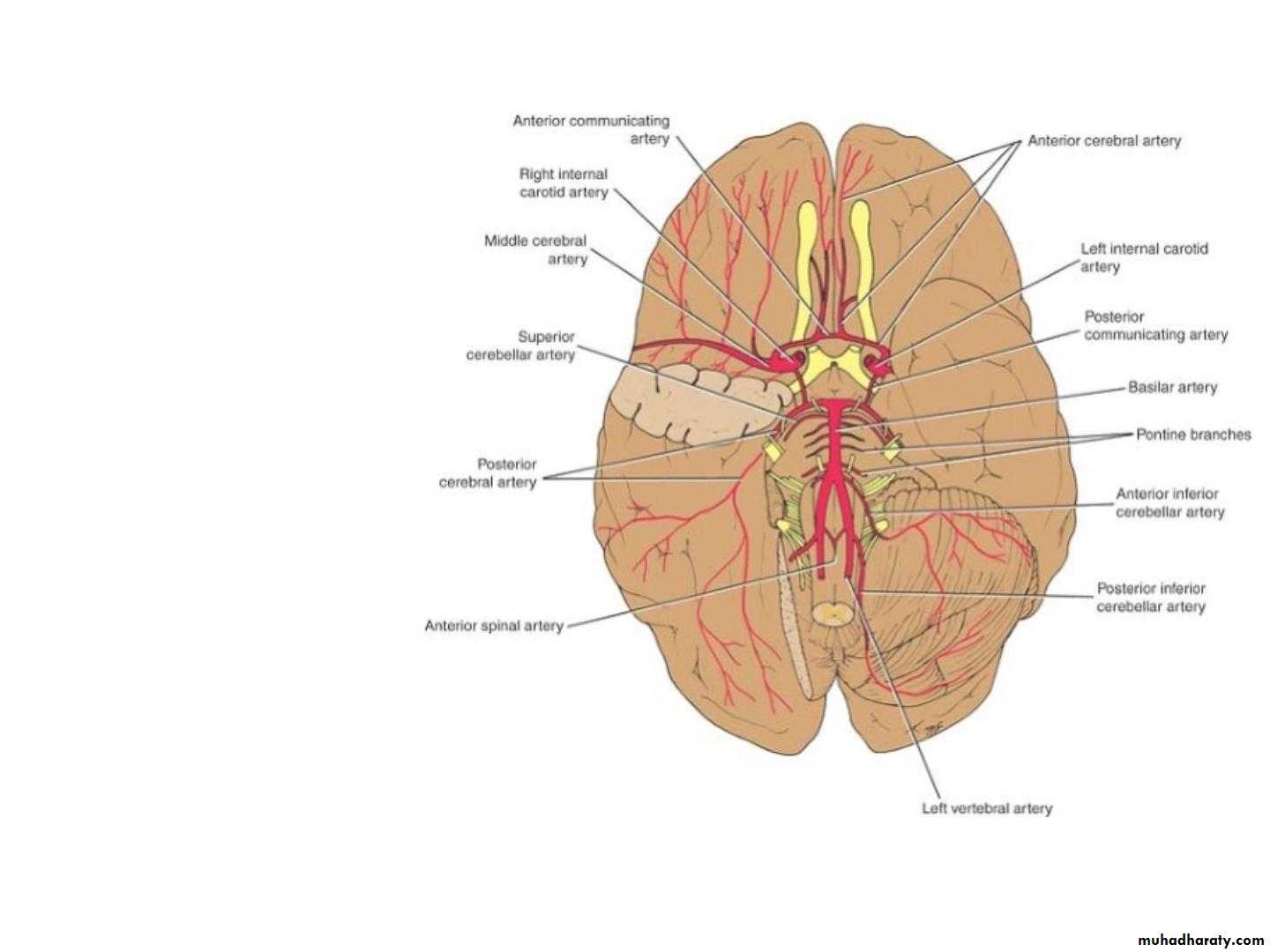 • The four arteries lie within the subarachnoid