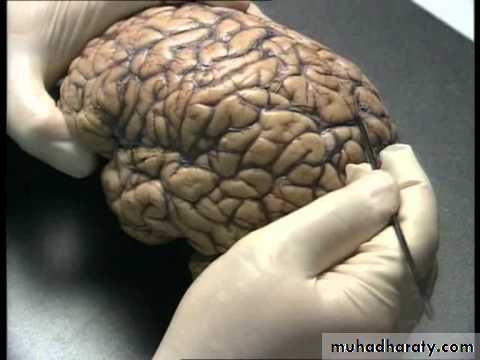 • piercing the arachnoid mater and turns to• the region of the medial end of the lateral