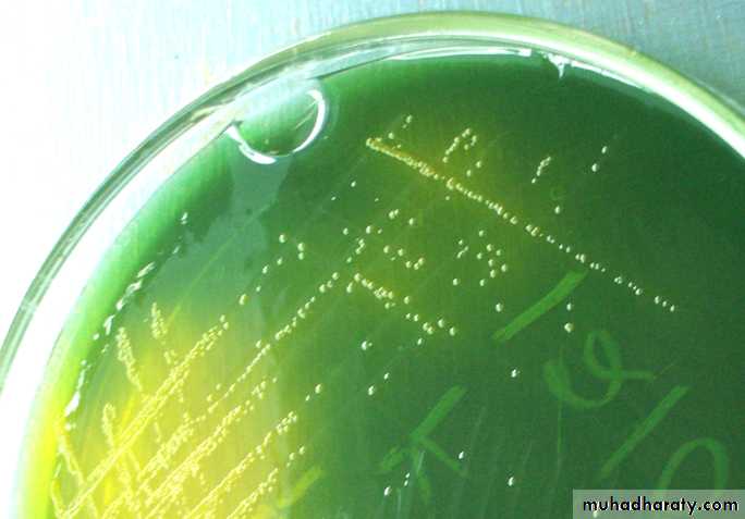 • V cholerae grow well at 37 °C on many kinds of media, including defined media containing mineral salts and asparagines as sources of carbon and nitrogen.• V cholerae grows well on thiosulfate-citrate-bile-sucrose (TCBS) agar and alkaline peptone water yellow colonies against the dark-green background of the agar.