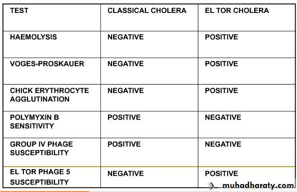 Two biotypes of epidemic V cholerae have been defined, classic and El Tor.