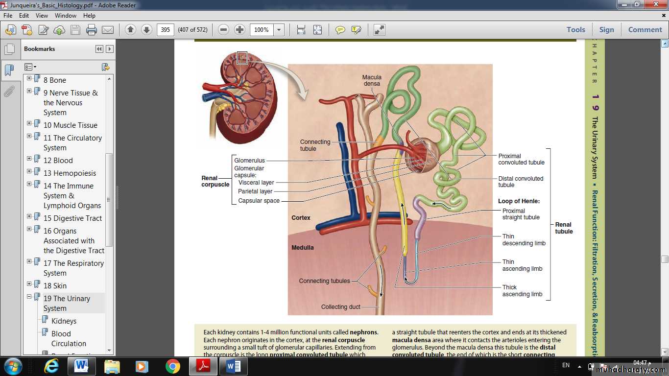 • ■ Loop of Henle (or nephron loop), in the medulla, with a thin descending and a thin ascending limb;