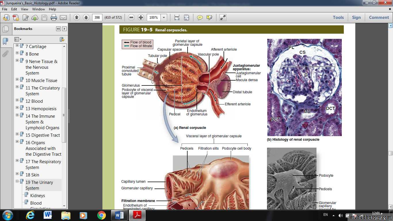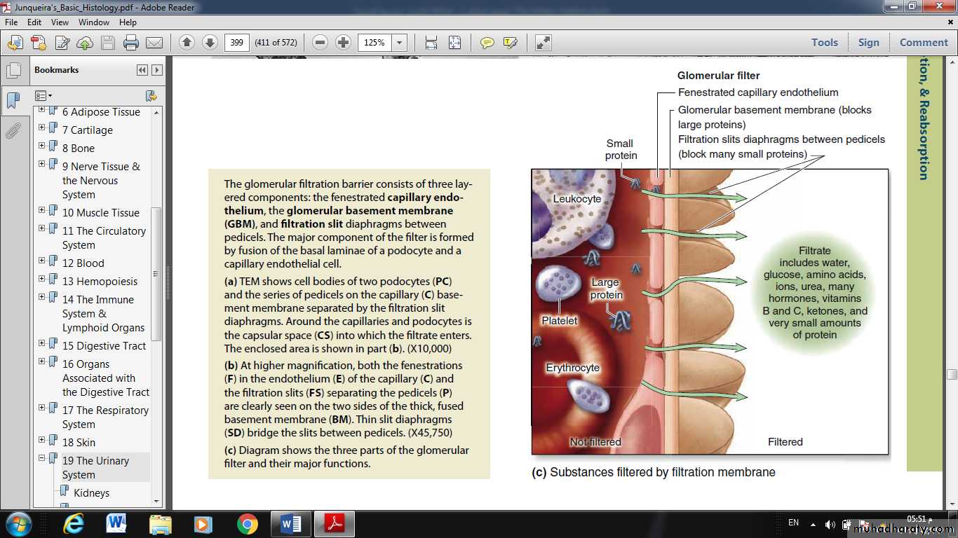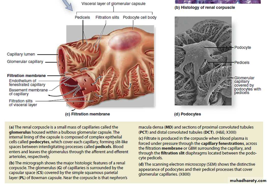 • The filtration slit diaphragms between pedicels, which restrict some small proteins and organic anions.