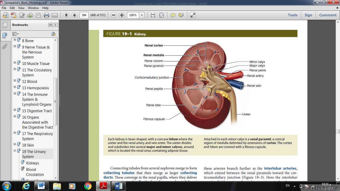 • Each kidney’s renal artery divides into two or more segmental arteries at the hilum.• Around the renal pelvis, these arteries branch further as the interlobar arteries, which extend between the renal pyramids toward the corticomedullary junction.
