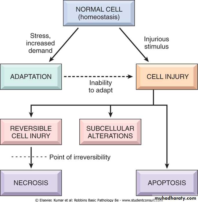 should the cells encounter physiologic or pathologic stresses or stimuli, they can modify the homeostatic state and achieve a new steady state to counteract the noxious effect of these external stresses and stimuli. These changed are referred to as adaptation. The aim of these adaptations is to avoid cell injury and death.