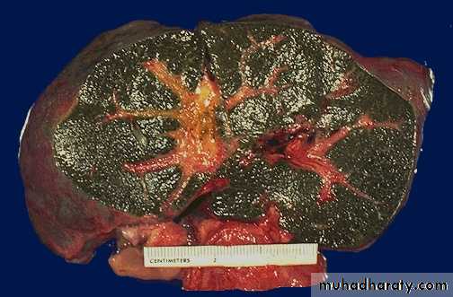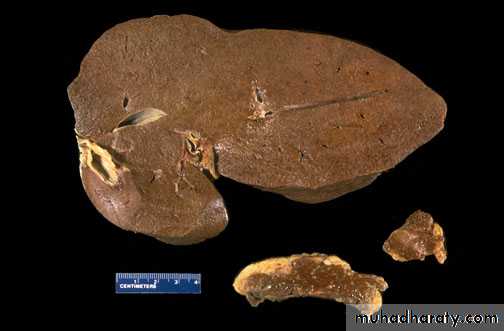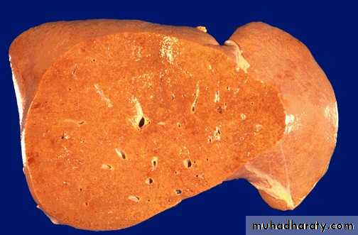 With increasing the accumulation, the organ enlarged and become progressively yellow, until in extreme cases it may weight 5 Kg (3 times the normal weight) and appear bright yellow, soft and greasy