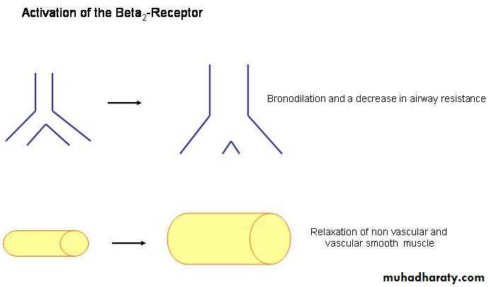 Effect of Beta2 Receptor Activation on Smooth Muscle: Activation of the beta2 receptor leads to vascular and nonvascular smooth muscle relaxation. Drugs that activate the beta2 receptor can be used to treat as asthma (by relaxing airway smooth muscle) and premature labor (by relaxing uterine smooth muscle).
