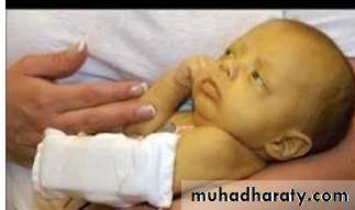 If hemolysis in the fetus is severe, may die in utero or may develop anemia, severe jaundice, and edema (hydrops fetalis). Kernicterus, a neurologic syndrome in which unconjugated bilirubin is deposited in the basal ganglia.