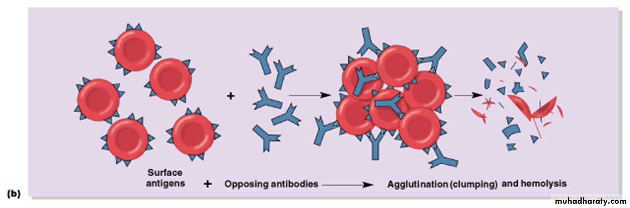 Plasma antibody meets its specific surface antigenBlood will agglutinate and hemolysis , If donor and recipient blood types not compatible.