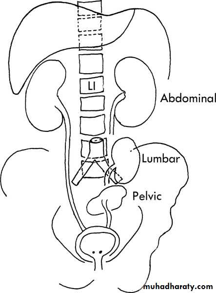 When the mature kidney fails to reach its normal location in the " renal fossa "Incidence : The incidence is 1 in 1000