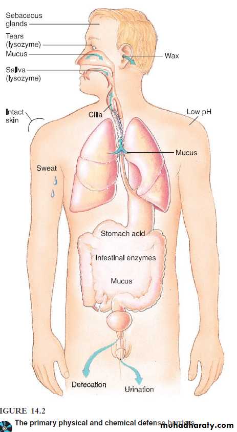 2. Physiologic barriersThe physiologic barriers that contribute to innate immunity include temperature, pH, and various soluble and cell associated molecules.