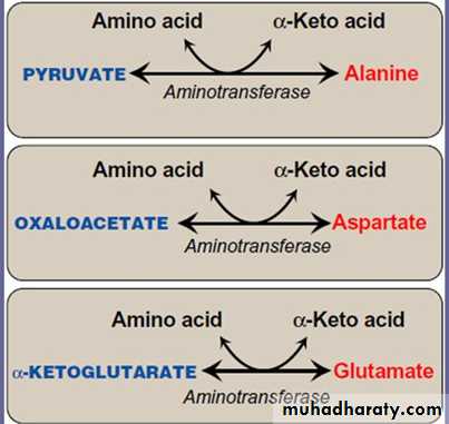 Alanine, aspartate, and glutamate are synthesized by transfer of an aminogroup to the α-keto acids pyruvate, oxaloacetate, and α-ketoglutarate,