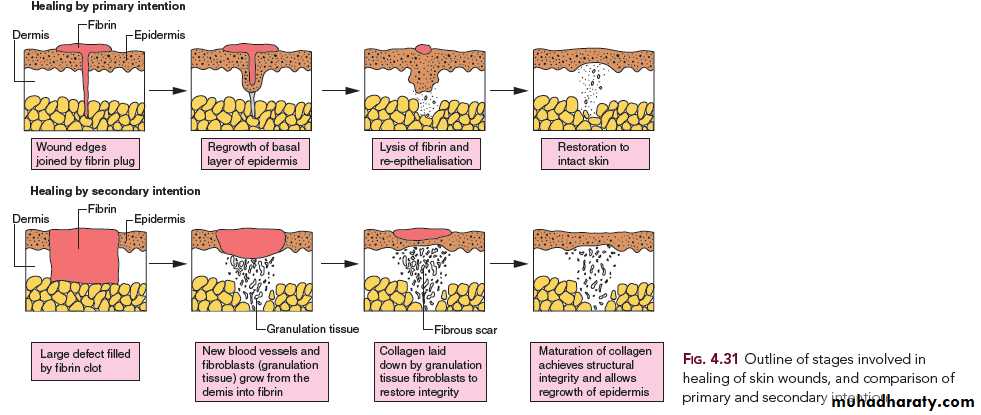 The two processes of healing, described above, can occur during healing of a diseased organ or during healing of a wound. A wound can be accidental or surgical. Now, we will discuss skin wound healing to demonstrate the two basic processes of healing mentioned above.