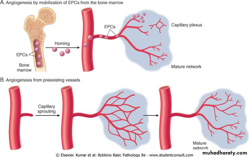 Coincident with fibroblast proliferation there is angiogenesis (neovascularization), a proliferation and formation of new small blood vessels. Vascular proliferation starts 48 to 72 hours after injury and lasts for several days.