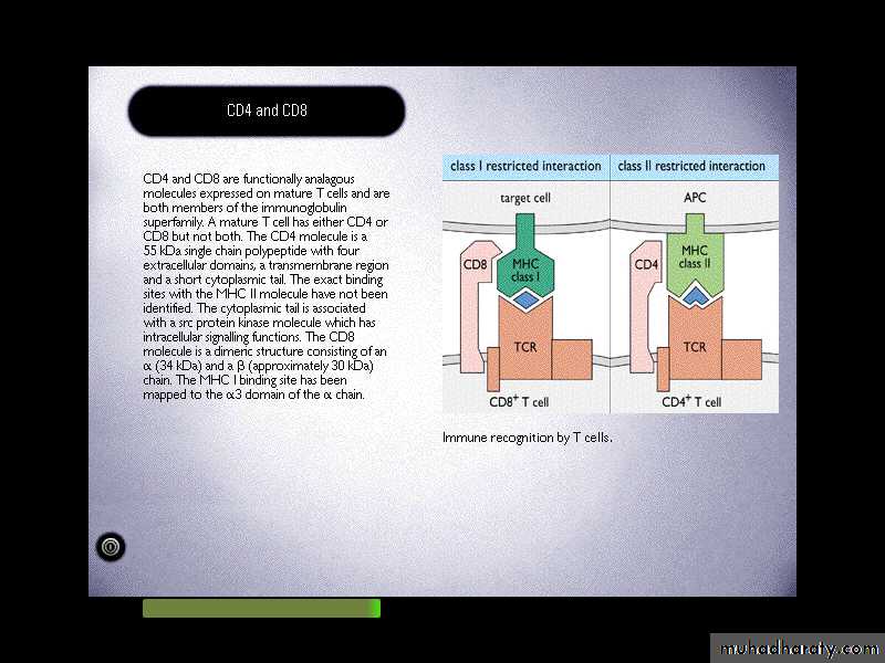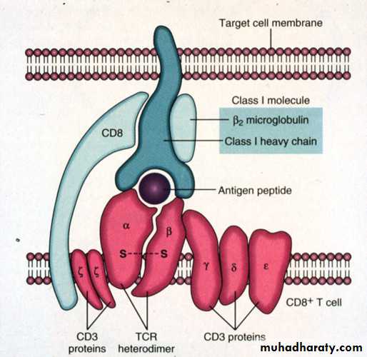Antigen recognition by T cells:CD8 T cells …………… MHC I molecules