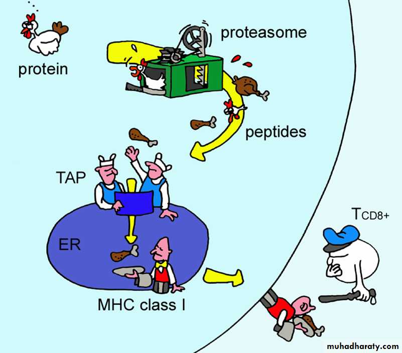 Degraded by proteases and enter the endoplasmic reticulumTransported via TAP (transporter associated with antigen processing)