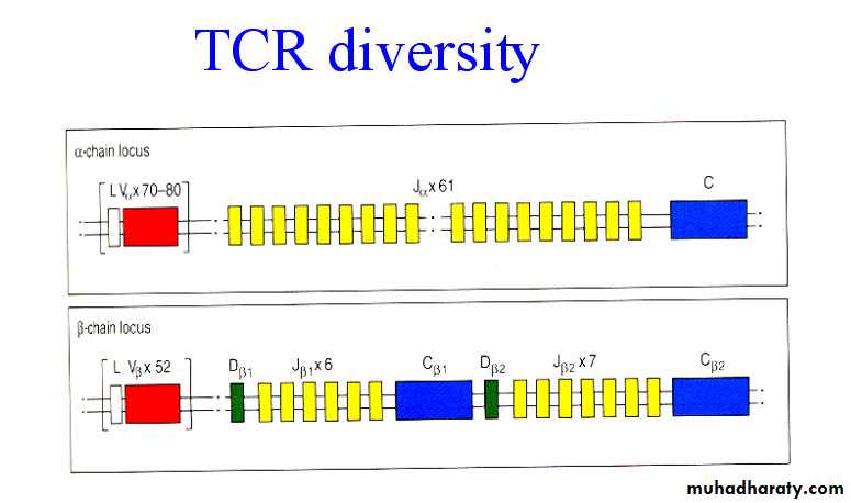 -the variable portion of the TCR a and b chains is encoded by different gene segmentsTCR diversity