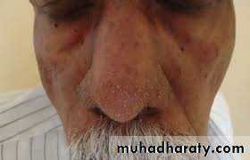 The genitals may be involved, as well as the skin areas rich in sebaceous glands, causing nasolabial or facial dyssebacea (seborrheic dermatitis).