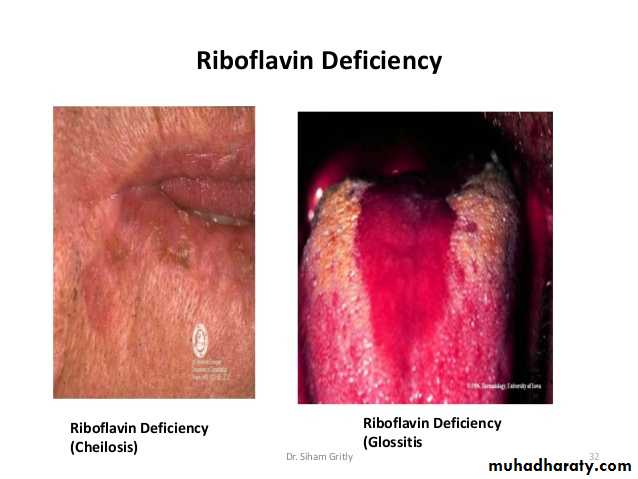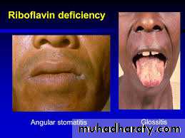 Deficiency is rare in developed countries. It mainly affects the tongue and lips and manifests as glossitis, angular stomatitis and cheilosis.