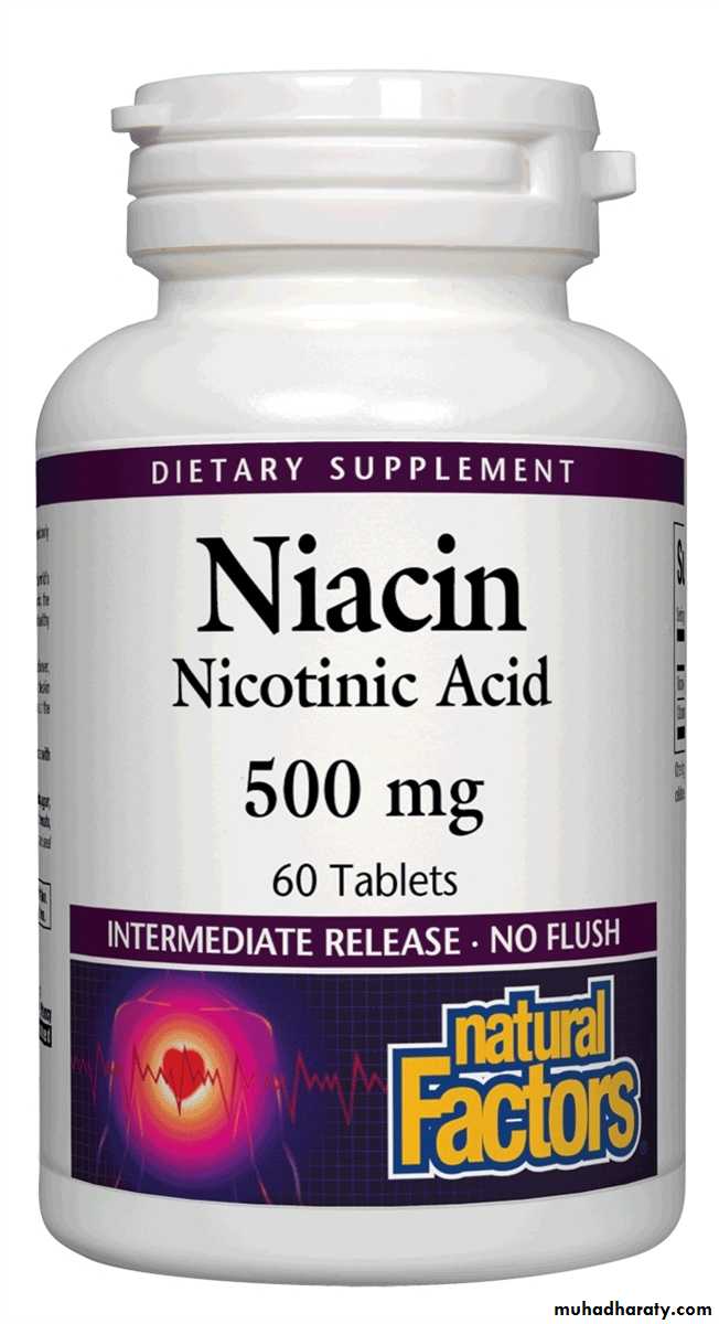 Nicotinic acid is a lipid-lowering agent but at doses above 200 mg a day gives rise to vasodilatory symptoms (‘flushing’ and/or hypotension).
