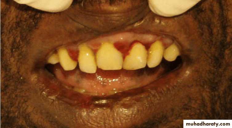 • Swollen gums that bleed easily• Perifollicular and petechial haemorrhages