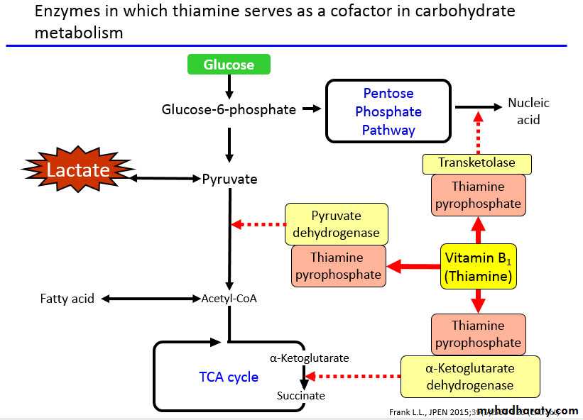 • Impaired absorption, storage and phosphorylation of thiamin in the liver.
