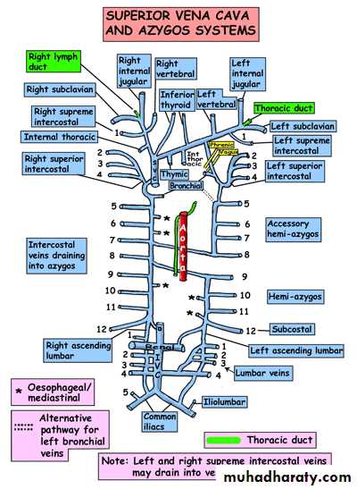 **Rt 1st & 2nd lumbar veins unite to form the Rt ascending lumbar vein… subcostal vein …azygous vein ..intercostal veins…SVC..Rt atrium of heart.**Lt 1st & 2nd lumbar veins…Lt ascending lumbar veins..subcostal vein..hemiazygous veins…intercostal veins..