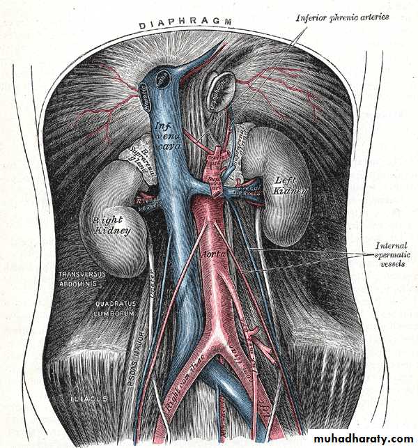 Note :-gonadal arteries Rt :-lies deep to 3rd part of duodenum..on inf.vena cava psoas…genitofemoral nerve.