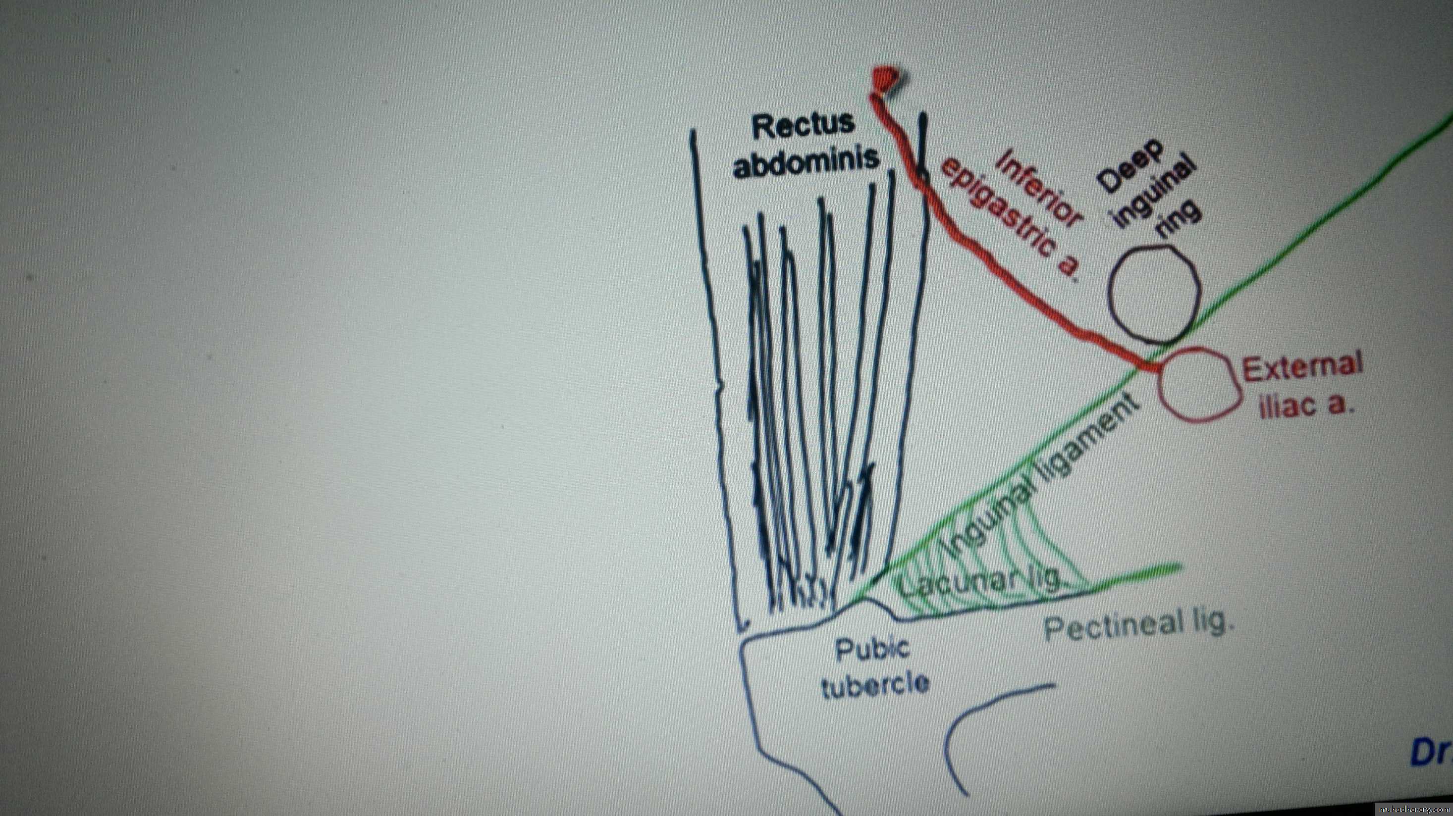 The direct inguinal hernia lies med.to inf.epigastric vessels