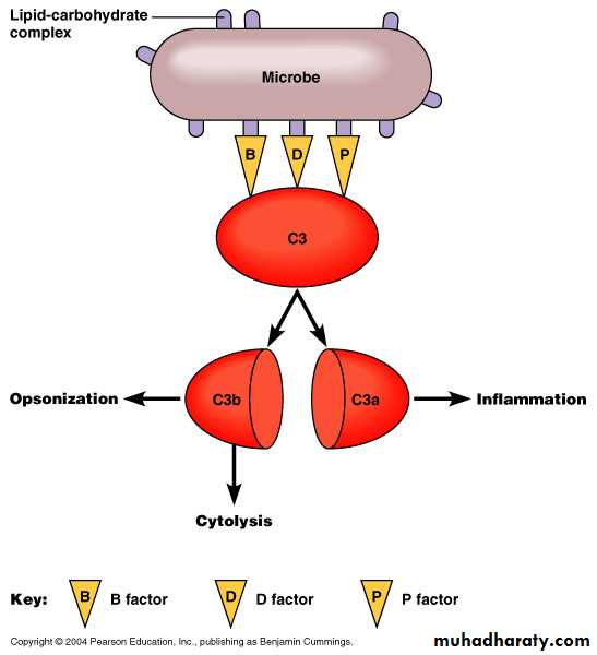 The Alternative (properdin) PathwayActivators: Bacterial LPS, cell wall of some bacteria, some yeast cells, aggregated IgA, and a factor