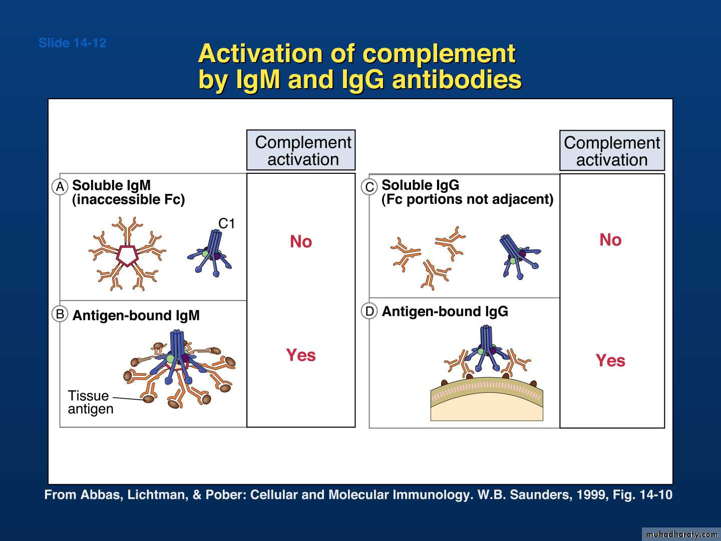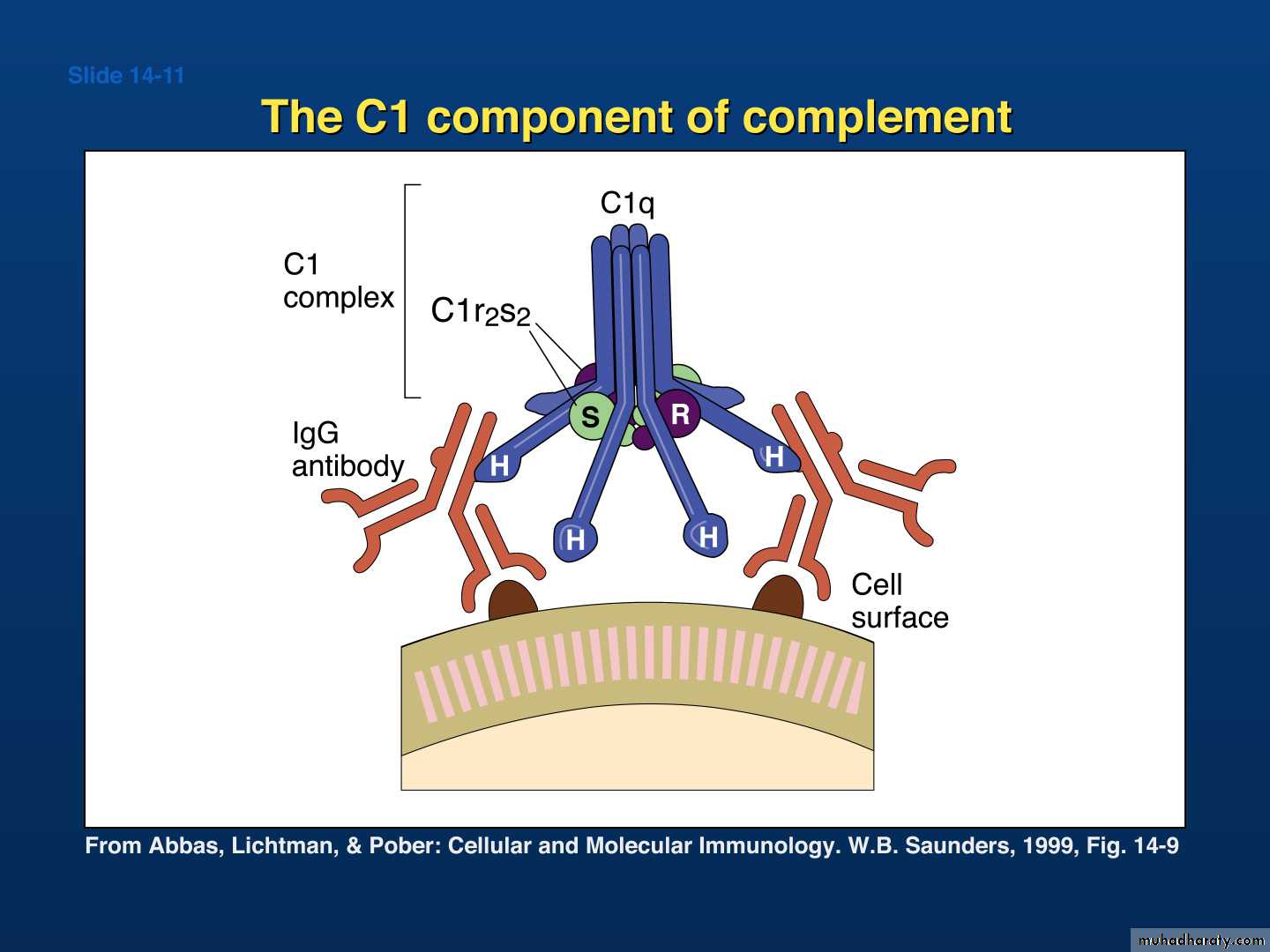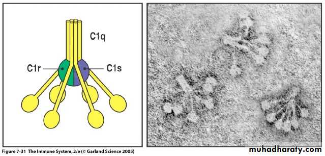 C1q is a polymer of 6 identical unitsC1q activation requires binding to a c1q- specific receptor on the FC region of at least 2 adjacent molecules of IgG or a single molecule of IgM, a reaction that requires Calcium ions