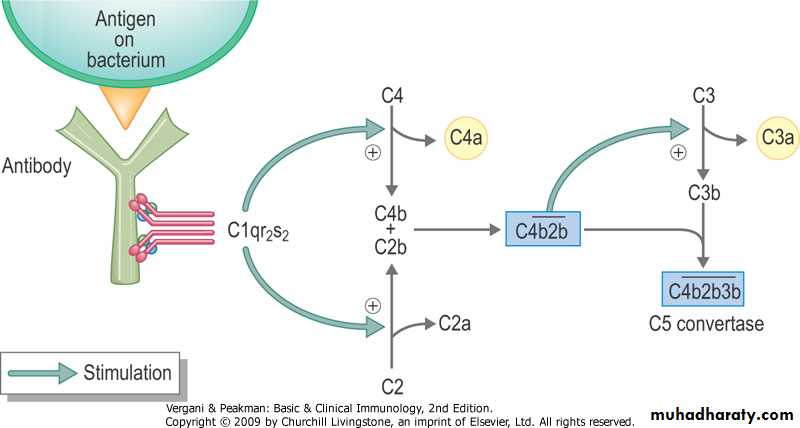 C2a binds to C4b creating a very active complex called the C3 convertase, where a single molecule can activate hundreds of C3 molecules