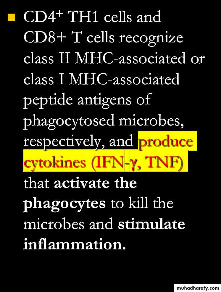 Many microbes have developed mechanisms that enable them to survive and even replicate within phagocytes, so the innate immunity is unable to eradicate infections by such microbes.In CMI against phagocytosed microbes, the specificity of the response is due to T cells – but the actual effector function is mediated by the phagocytes.