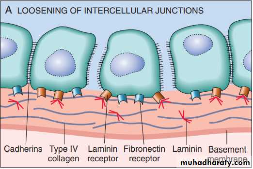 1- detachment of tumor cells from each other.